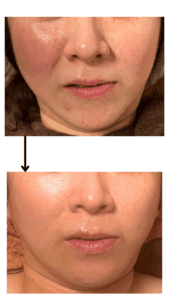 レモンボトルでは顎のラインでしたがレッドショットでは頬も追加しました。びっくりしたのがレッドショットの1回の効果!頬の脂肪と共に赤みも取れてます。レッドショットは肌質にも効果が期待出来るだけにとってもお得感ありますねー